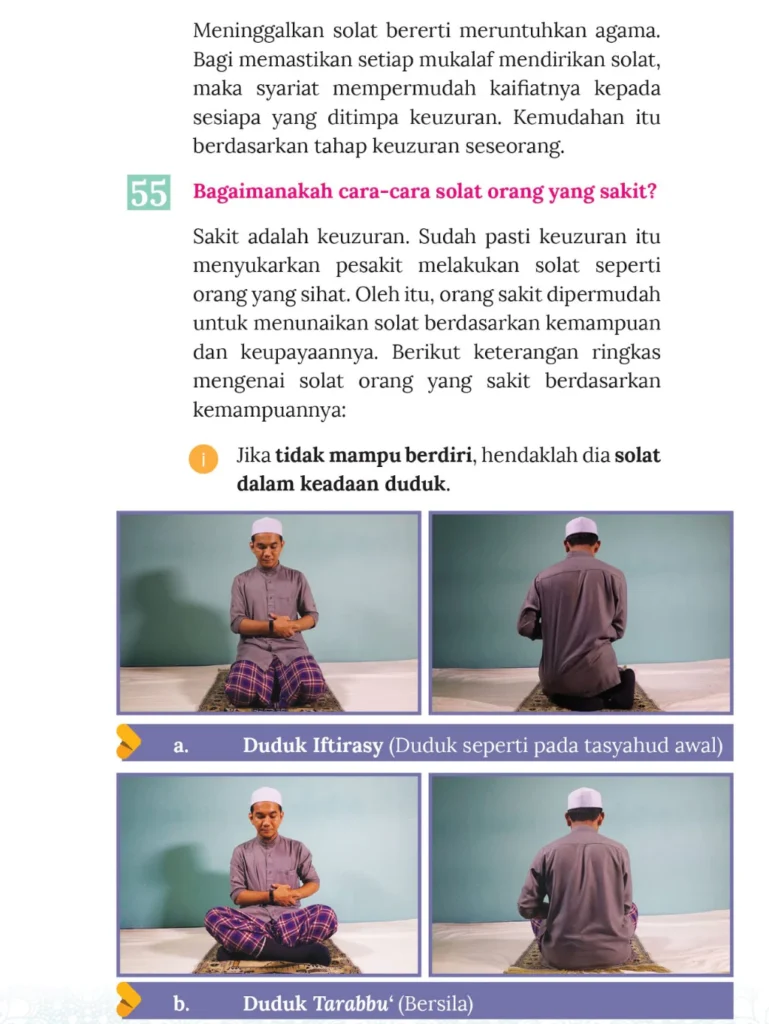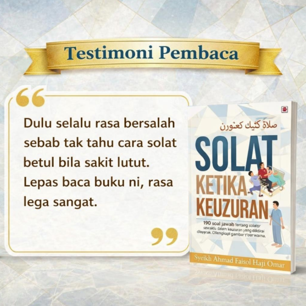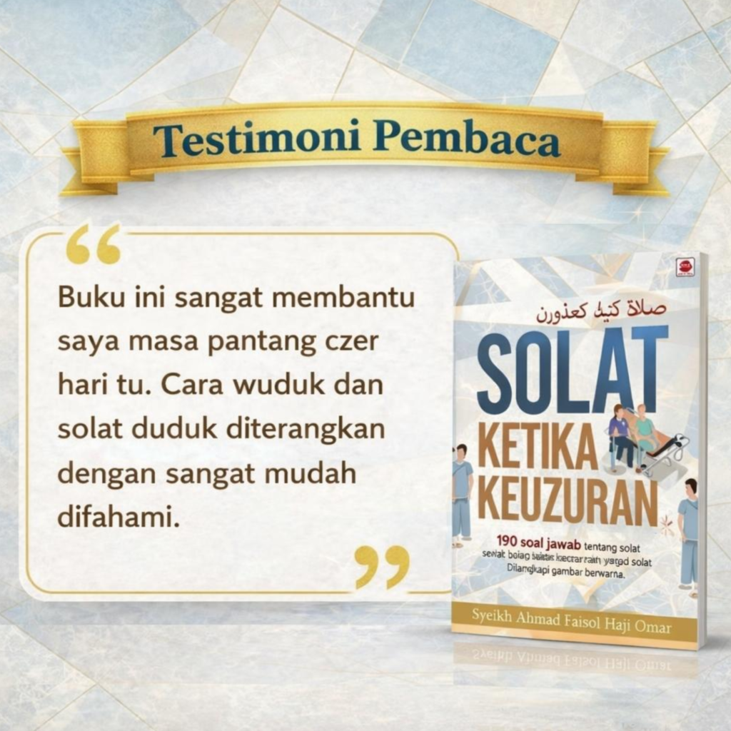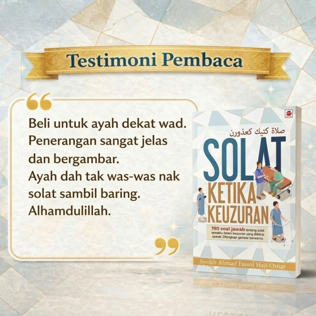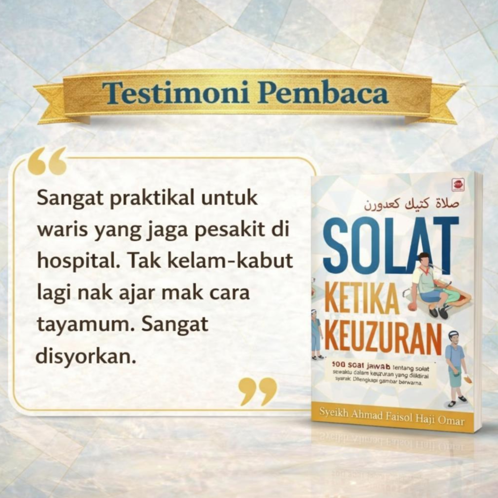 - Merangkumi pelbagai situasi kesukaran dari solat duduk hinggalah cara bersuci pesakit
